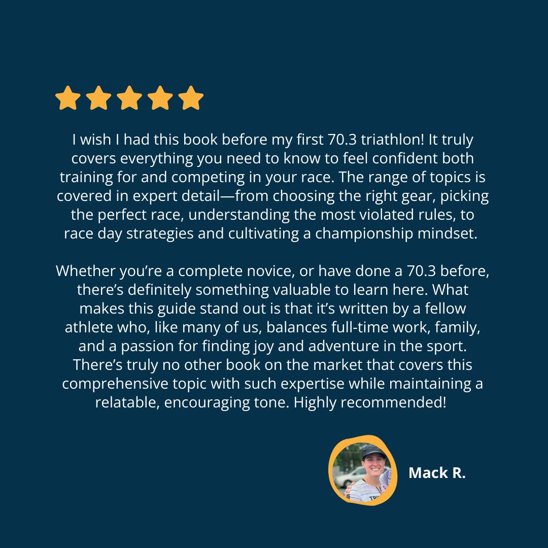 Triple Threat Life is an email newsletter with practical triathlon tips and mindset techniques to help everyday athletes succeed. Some installments are free. Some benefits are for paid subscribers only. Sign up here.